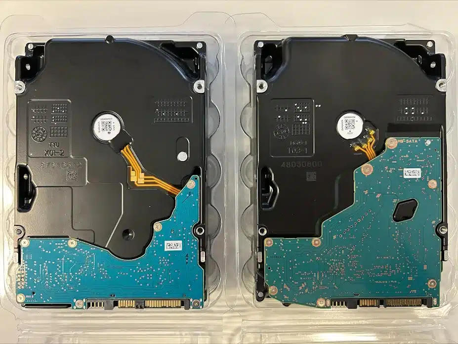Při porovnávání podnikových pevných disků z doby před 20 lety s dnešními modely je třeba pečlivě hledat vnější rozdíly. Nejpozoruhodnější změnou je velikost obvodové desky ve spodní části jednotky: byla značně zmenšena a již nezasahuje pod vřeteno, které drží disky. Uvnitř pouzdra tak zůstává více místa pro magnetické desky. Z původních devíti ploten se stalo 10 a díky tenčím diskům se nyní zvýšilo na 11, což umožňuje mnohem větší úložné kapacity. Kromě toho mají podnikové HDD stále 3,5palcový formát a rozhraní SATA nebo SAS.